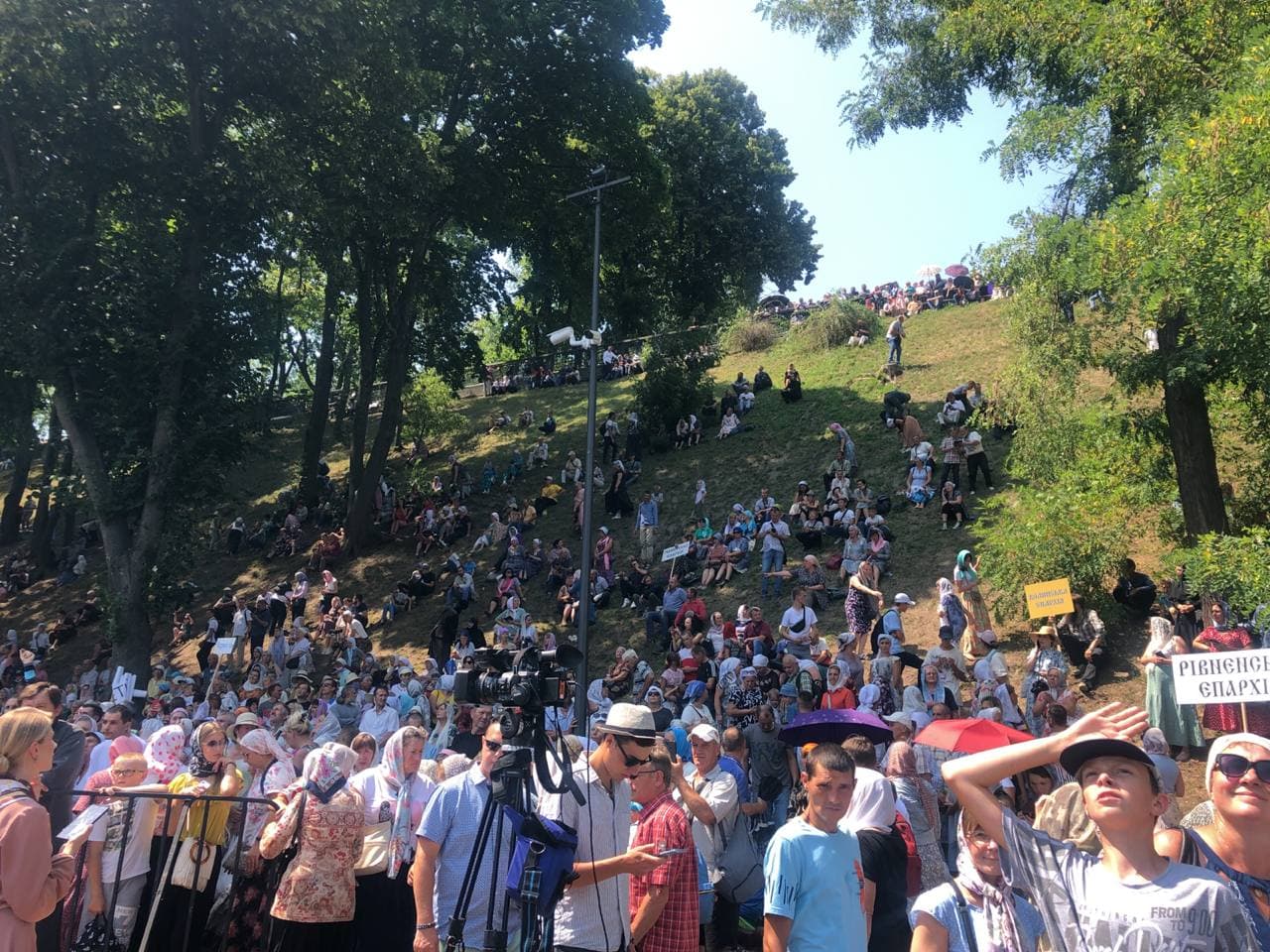 11:47 На Владимирской горке, где в 13:00 начинается молебен и крестный ход УПЦ, уже довольно много людей. Народ подходит со всех прилегающих улиц.
