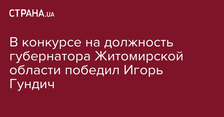 По итогам конкурса на должность председателя Житомирской областной государственной администрации победителем признан Игорь Гундич, ныне временно исполняющий обязанности губернатора, передают Украинские новости.