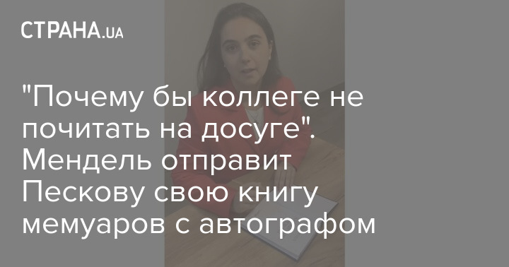 "Почему бы коллеге не почитать на досуге". Мендель отправит Пескову свою книгу мемуаров с автографом
