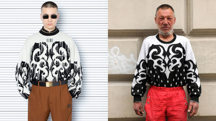 Французский модный бренд одежды Vetements для создания образов лукбука VTMNTS 2022 вдохновился нарядами бездомного мужчины из Львова, а в некоторых случаях и практически полностью их скопировал.