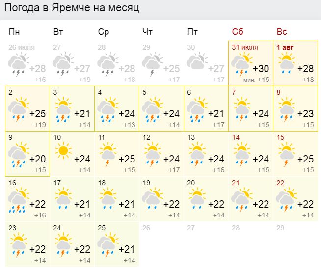 1-3 августа днем +27...+29, возможны грозы