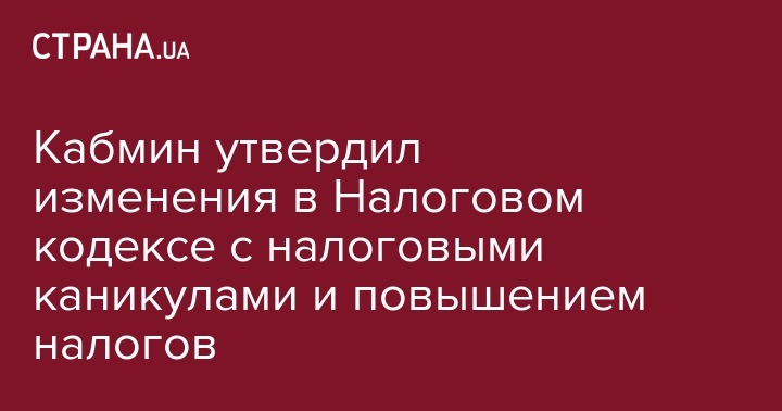 В среду, 5 октября, Кабмин одобрил изменения в Налоговый кодекс и передал их на рассмотрение Национальному совету реформ. Об этом сообщает "112 Украина".