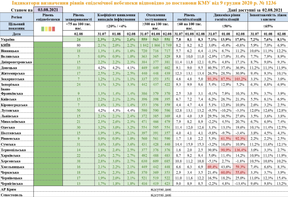 В отдельных регионах уже пошел тревожный рост госпитализаций. Уже в пяти областях она не соответствует показателям "зеленой" зоны карантина (должно быть менее 50%).