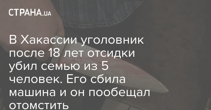 В Хакасии (субъект РФ - Ред.) мужчина, отсидевший 18 лет в тюрьме за убийство, вышел на свободу и зарезал семью из пяти человек.