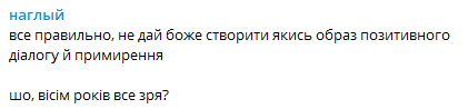 "Все правильно, не дай боже создать какой-то образ позитивного диалога и примирения.