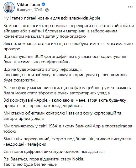 Украинцы обсуждают тему со слежкой Apple. Они пишут о том, что новая цифровая диктатура ближе, чем кажется и мы оказываемся в мире Оруэлла, где в роли Большого брата выступает Apple.
