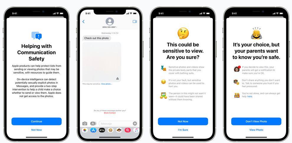 Приложение Messages будет использовать программы машинного обучения, чтобы предупреждать о подозрительном контенте. Если на устройство ребенка придет фото, которое вызывает подозрение, то оно будет размыто. Если же сам ребенок попытается отправить подобные снимки, то гаджет пришлет предупреждение, а в случае их отправки, Apple уведомит родителей.