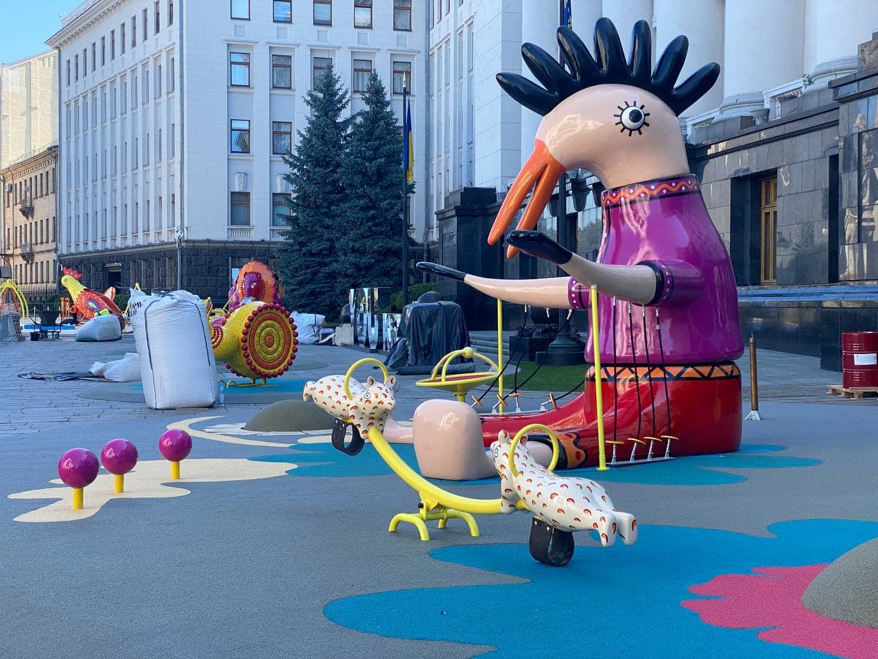 Под стенами Офиса президента появилась площадка с петухом в косоворотке. Ее откроют к Дню Независимости. Видео