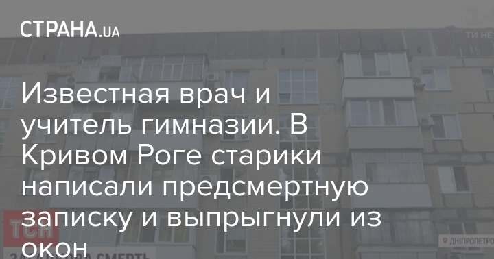 В Ингулецком районе Кривого Рога утром 8 августа произошло семейное самоубийство. Из окна четвертого этажа в доме №32 по улице Неделина выбросились 84-летний мужчина и его 83-летняя супруга.