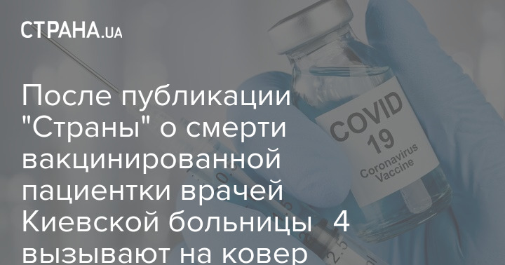 Врачей Киевской городской клинической больницы №4, где ранее вакцинированная пациентка умерла от коронавируса, после публикации "Страны" вызывают на ковер в Киевский городской департамент здравоохранения.