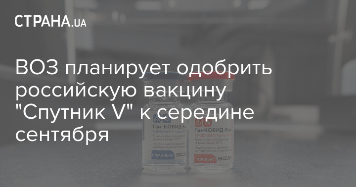 Всемирная организация здравоохранения к середине сентября планирует одобрить российскую вакцину от коронавируса "Спутник V".
