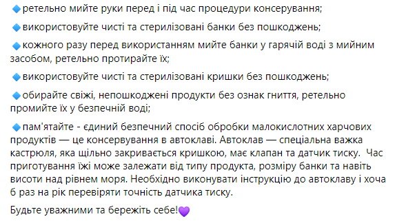 - помните - единственный безопасный способ обработки малокислотных пищевых продуктов - это консервирование в автоклаве.