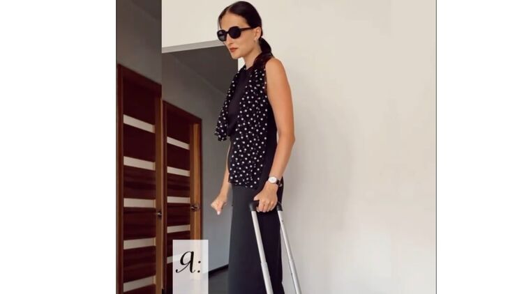 В начале видео девушка входит в кадр и начинает собираться - надевает шарфик, солнечные очки и берет чемодан на колесиках, при этом на экране мелькают цитаты украинских чиновников.
