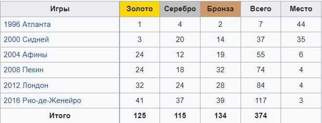 Особенно успешными были прошлые летние соревнования в Рио-де-Жанейро, когда в копилке сборной оказалось 117 медалей: 41 золотая, 37 серебряных и 39 бронзовых.