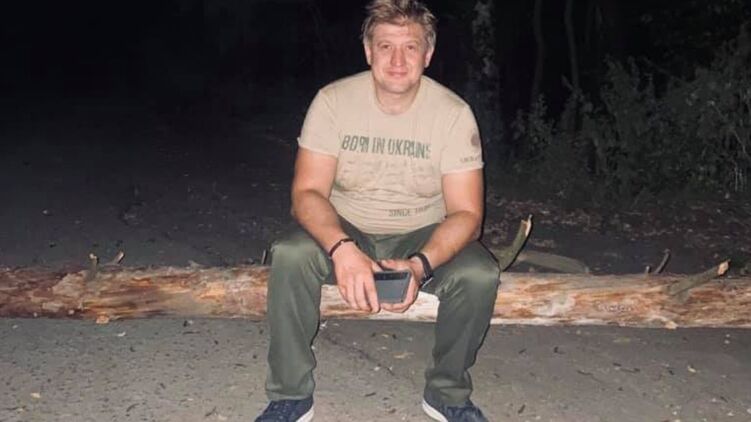 Данилюк сфотографировался сидя на упавшем на него дереве. Фото: facebook.com/o.danyliuk