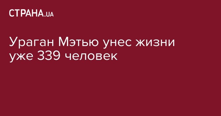 "Число погибших от урагана Мэтью на Гаити выросло до 339 человек", - говорится в сообщении со ссылкой на данные местных властей.