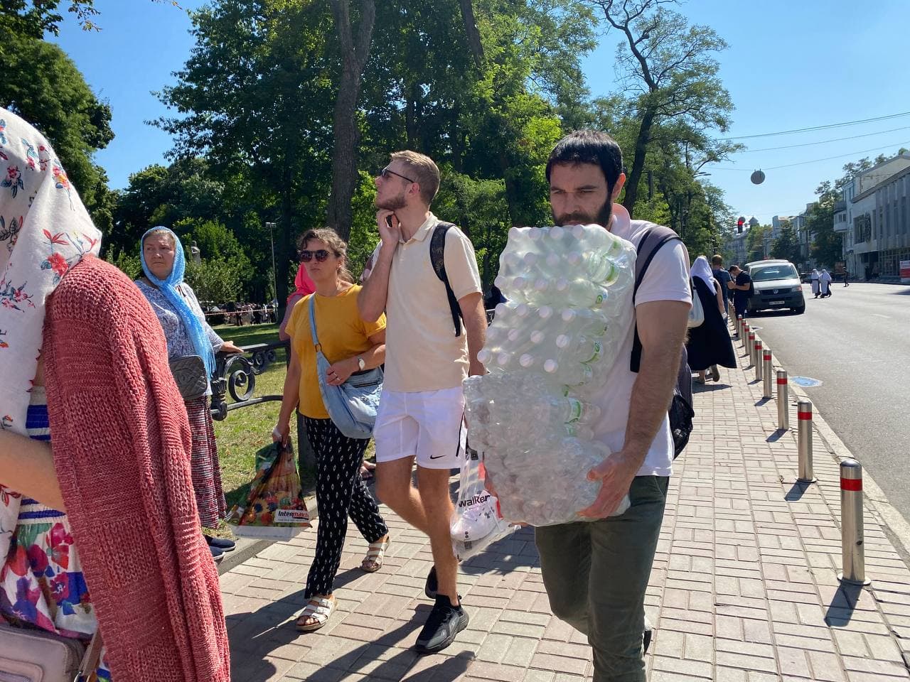 13:08 Тем временем люди между собой поговаривают, что из-за молебна прихожан УПЦ Варфоломей не приедет к Верховной Раде.