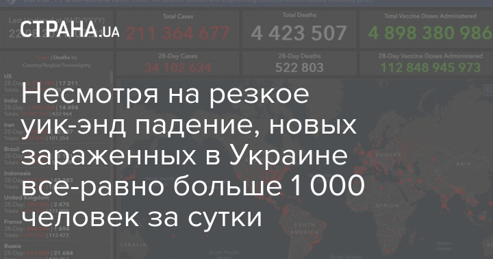 Несмотря на резкое уик-энд падение, новых зараженных в Украине все-равно больше 1 000 человек за сутки