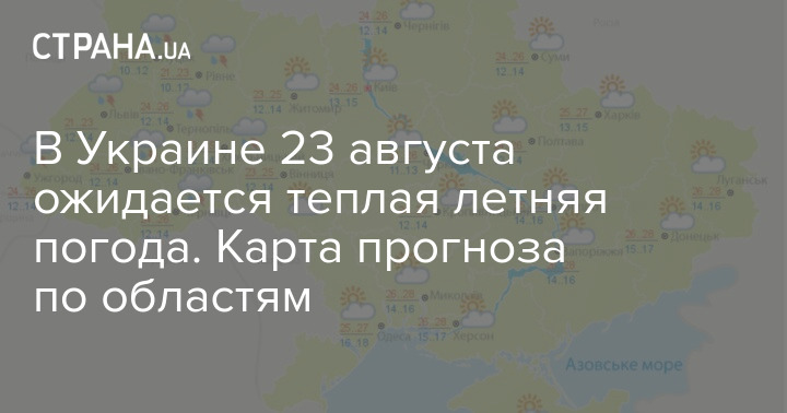 В Украине 23 августа ожидается теплая летняя погода. Карта прогноза по областям