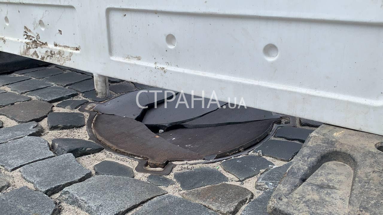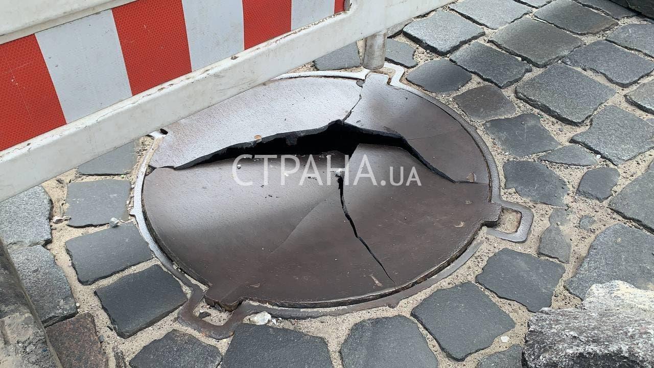 15:44 Последствия проехавшей военной техники. На Владимирском спуске лопнули металлические люки.