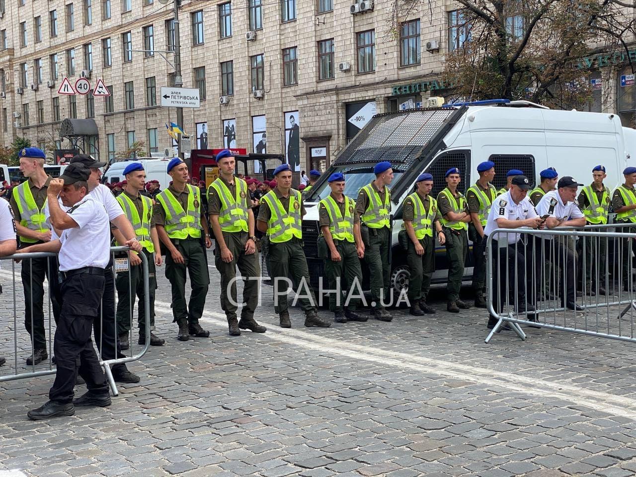 Значительно усилены меры безопасности в центральных кварталах Киева. Правоохранители стоят буквально через каждых 20 метров.