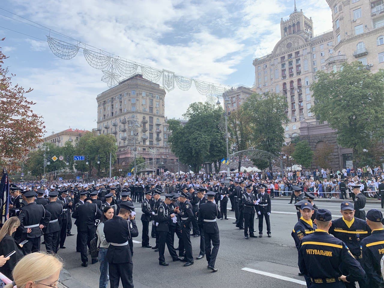 09:25 На Крещатике сейчас людей в форме едва ли не больше, чем гражданских.
