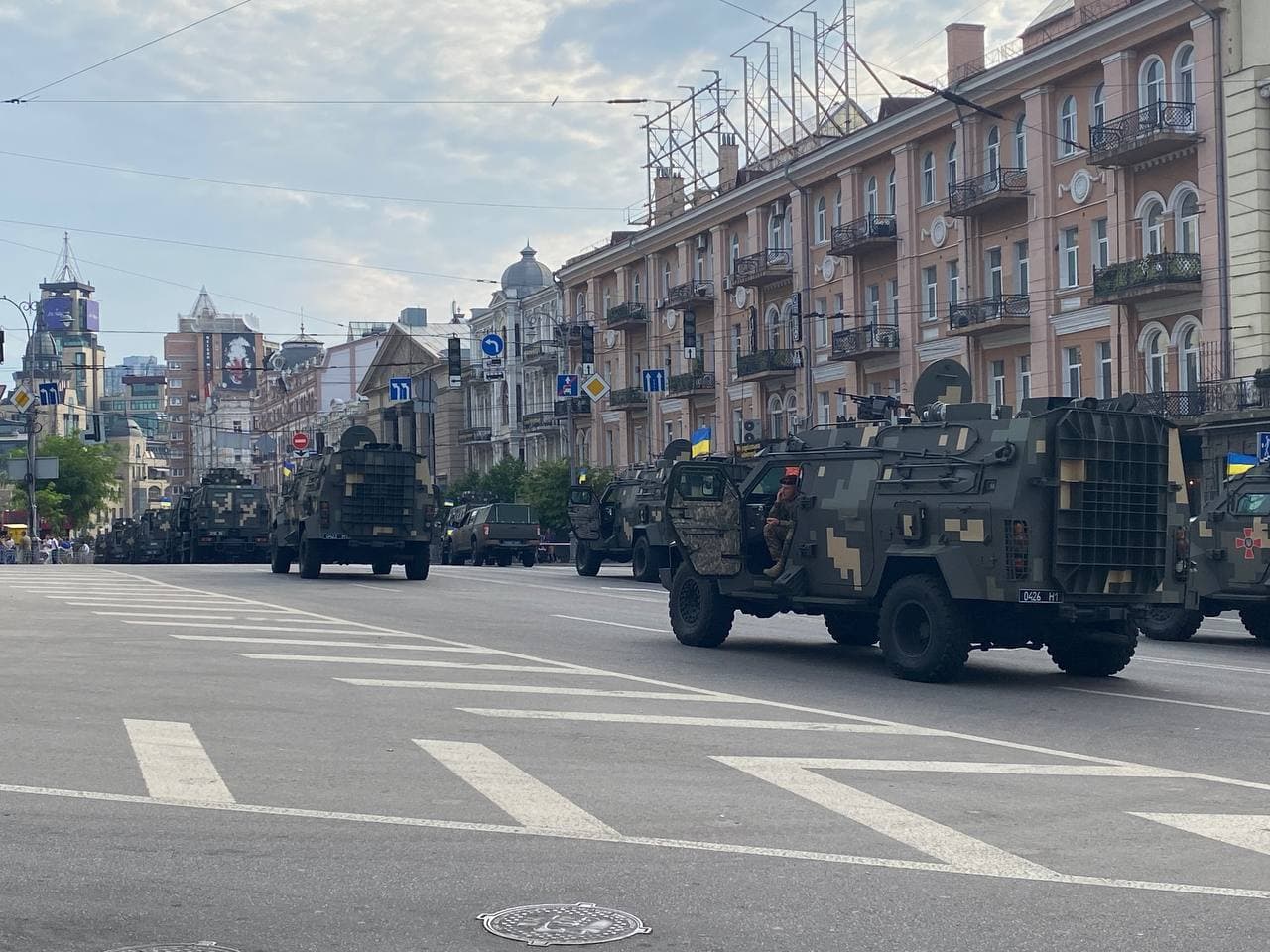 09:00 Идут последние приготовления к празднику Независимости. На улице Большая Васильковская уже выстроены колонны военной техники.