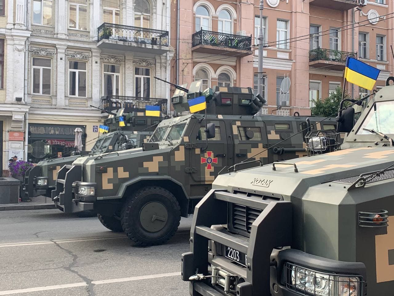 11:45 По Крещатику пошли механизированные колонны.