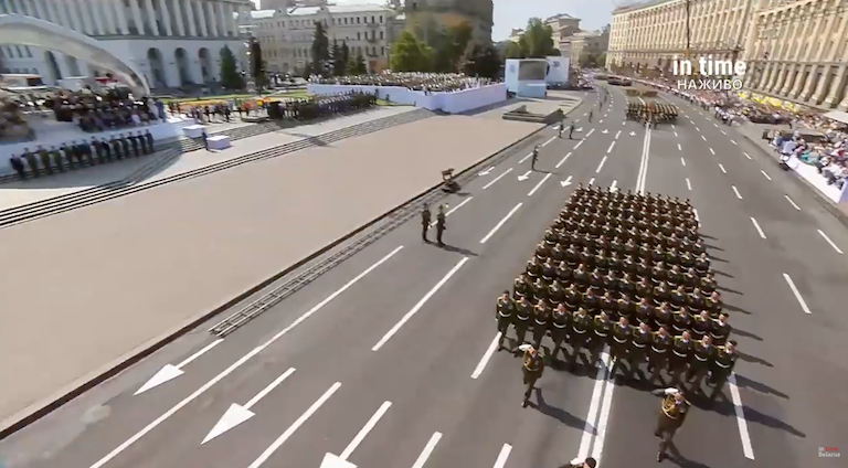09:58 Диктор перед парадом рассказывает, что украинская армия противостоит российской, которая больше, чем армии ряда стран Европы. И говорит, что Украина усилит блок НАТО, поскольку имеет "уникальный боевой опыт".