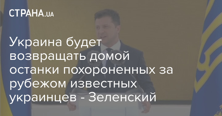 Президент Украины Владимир Зеленский, который 24 августа выступил на Крещатике в Киеве в рамках торжественных мероприятий по случаю Дня Независимости, заявил, что Украина будет возвращать домой останки известных украинцев, которые похоронены за рубежом.