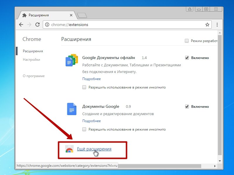Расширения легко можно найти в настройках обоих браузеров. Поясним на примере "Хрома".