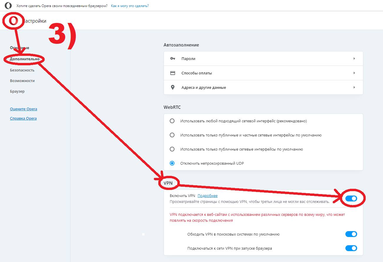 Кроме того, VPN там нужно самостоятельно включить в настройках.