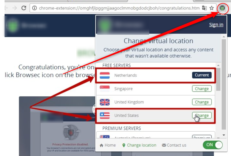 Они работают более-менее стабильно и обеспечивают приличную скорость соединения. После установки расширение можно будет включать или отключать специальной кнопкой на панели управления (как правило, справа от адресной строки).