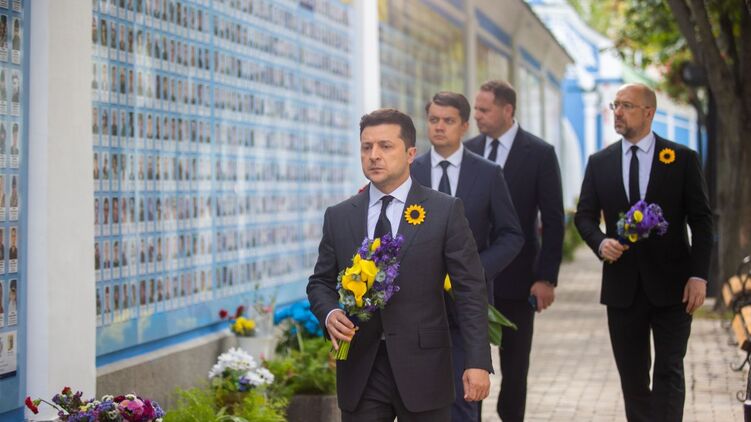 "В День памяти защитников Украины, погибших в борьбе за независимость, суверенитет и территориальную целостность Украины, президент Владимир Зеленский возложил цветы к Стене памяти павших за наше государство, расположенной на ул. Трехсвятительской в Киеве", - говорится в сообщении.