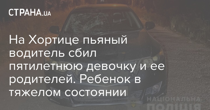 Пятилетняя девочка и ее родители серьезно травмированы в ДТП, которое произошло в Запорожье на Хортице. Отдыхающая на острове семья оказалась под колесами автомобиля под управлением нетрезвого водителя. Об этом сообщается на сайте региональной Нацполиции.