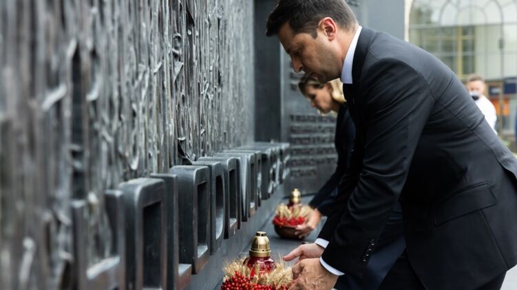 Украинский президент Владимир Зеленский вместе с супругой Еленой во время визита в США посетили Мемориал жертвам Голодомора 1932-1933 годов, установленный в Вашингтоне.