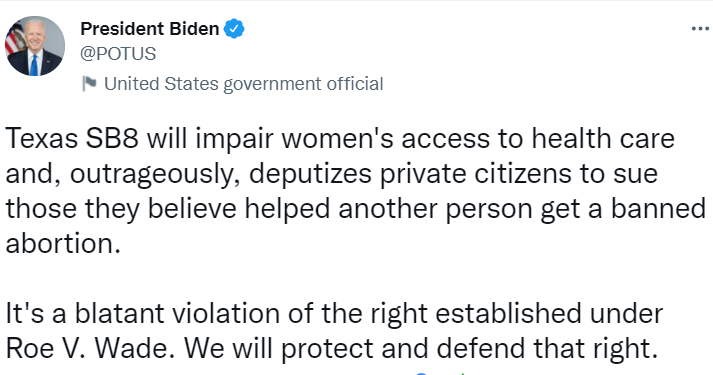 21:21  Прямо во время встречи с Зеленским твиттер Байдена пишет о запрете делать аборты в Техасе.