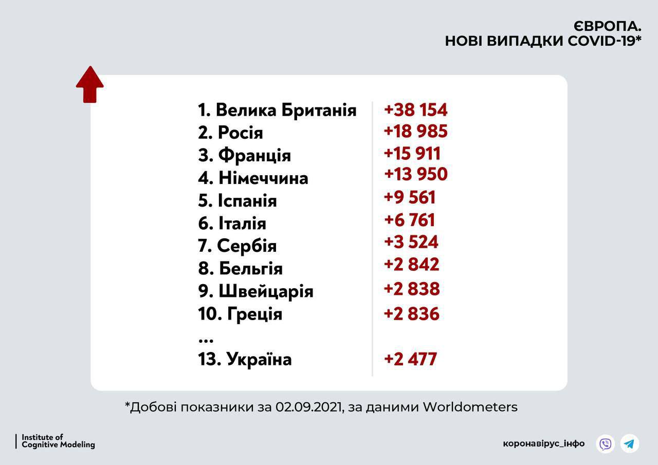 При этом, если неделю назад, по данным статистического ресурса Worldometers, Украина была на 52-м месте в мире по количеству новых случаев ковида и на 15-м - среди европейских стран, то сейчас Украина поднялась на девять строчек в мире и на две - в Европе.