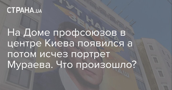 На Доме профсоюзов на Майдане Независимости в центре Киева 3 сентября заметили баннер с изображением лидера партии "Наши" Евгения Мураева. Это вызвало скандал - возмутился "Национальный музей революции Достоинства". Позже баннер исчез.