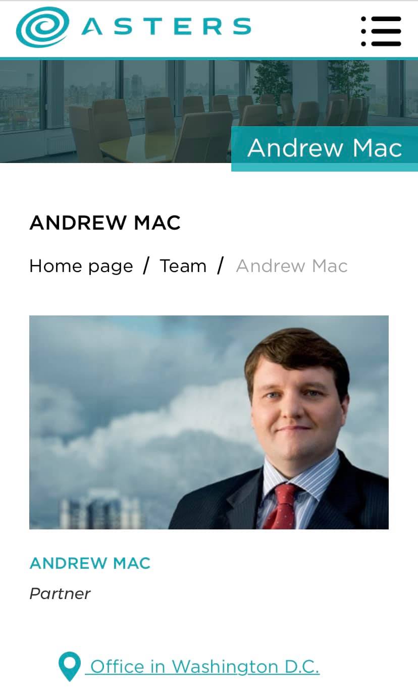 Эндрю Мак значится в штате лоббистской фирмы "Астерс" в Вашингтоне