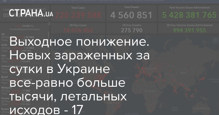 Выходное понижение. Новых зараженных за сутки в Украине все-равно больше тысячи, летальных исходов - 17