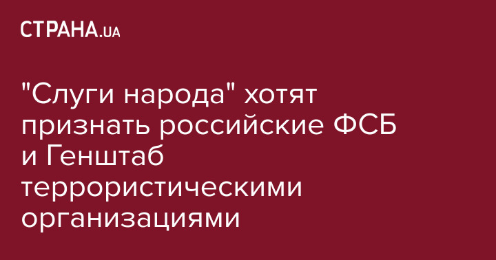 Во вторник, 7 сентября, в первый день шестой сессии парламента, народные депутаты от фракции "Слуга народа" группы "За будущее" зарегистрировали проект постановления идет о признании российской ФСБ, а также Генштаба армии РФ террористической организациями.