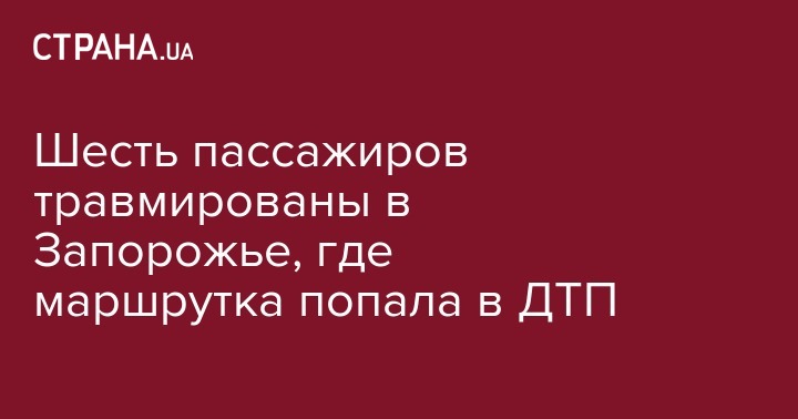 8 октября, около 23:00 в Александровском районе Запорожья вследствие аварии маршрутного такси, были травмированы 6 человек, из них 4 с различной степенью тяжести госпитализированы.