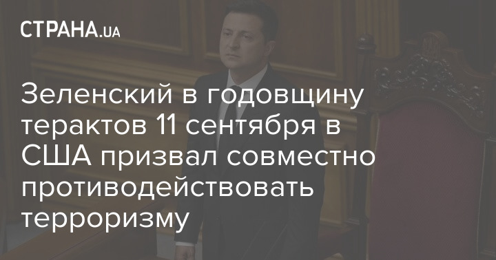 Президент Украины Владимир Зеленский в годовщину теракта в Соединенных Штатах 11 сентября заявил о том, что необходимо совместно противодействовать терроризму.