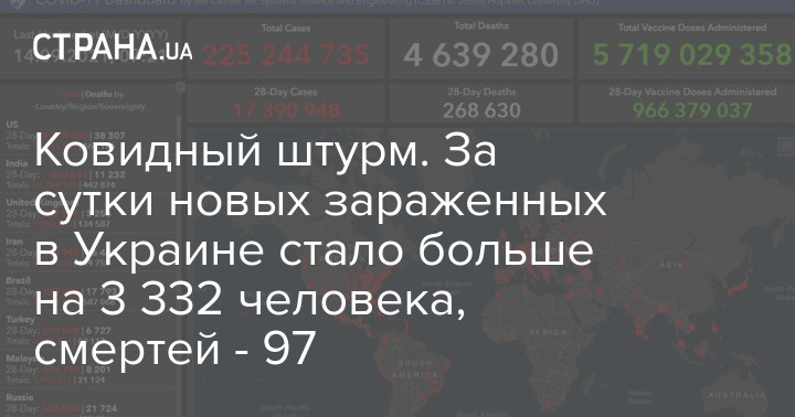 Ковидный штурм. За сутки новых зараженных в Украине стало больше на 3 332 человека, смертей - 97