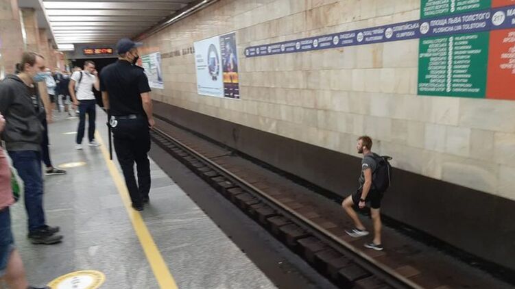 По его информации, инцидент произошел вечером на станции метро "Контрактовая площадь". Сначала пьяный молодой человек около пяти минут вел себя неадекватно. По словам очевидца, полицейский на станции в это время следил за ним. Задержания, впрочем, не последовало.