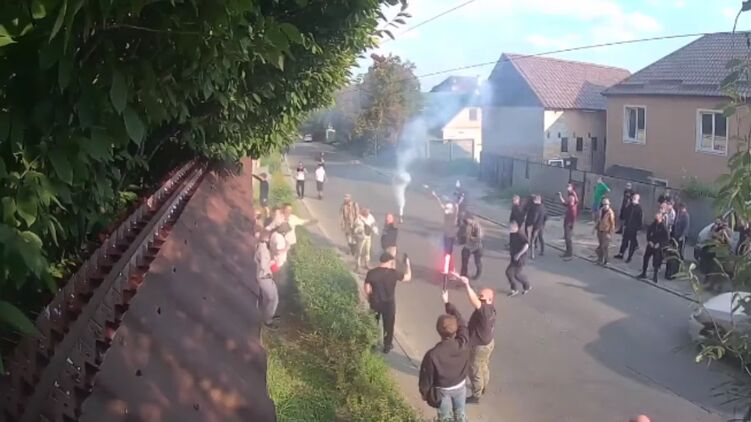 Националисты забросали дом Медведчука фаерами. Скриншот с видео