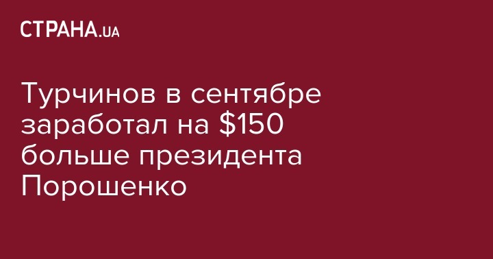 Cекретарь Совета национальной безопасности и обороны Александр Турчинов в сентябре заработал 34,2 тыс. гривен. Размер зарплаты Турчинова указывается в ответе аппарата СНБО на запрос "Украинских Новостей".
