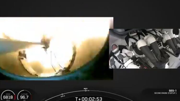 Группа космических туристов в момент запуска, скриншот: twitter.com/SpaceX