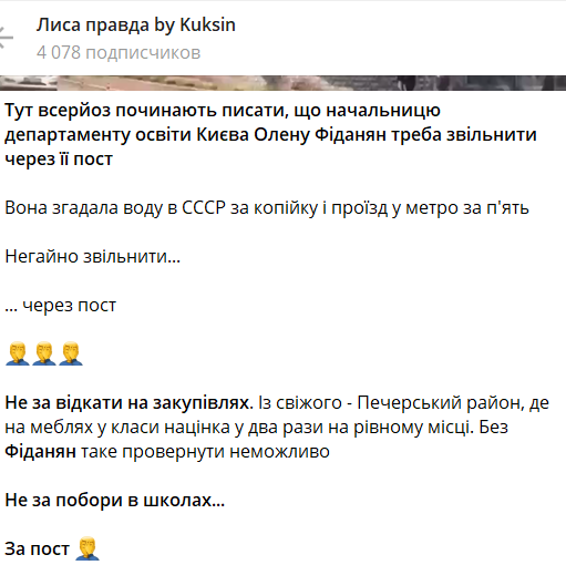Поэтому уже звучат мнения, что пост Елены Фиданян призван отвлечь внимание от коррупционных подозрений "благодатной" для скандала темой ностальгии по СССР.
